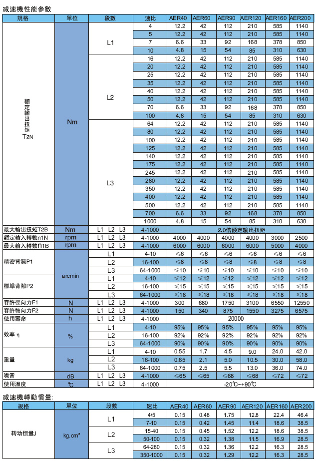 為經(jīng)濟(jì)型圓形法蘭設(shè)計(jì),型號(hào)分:AE 42、60、90、120、160機(jī)座型號(hào)。速比:1-200有18種比速可選擇;分一、二減速傳動(dòng);精度:傳動(dòng)精度在8-10弧分,二級(jí)傳動(dòng)精度在12-15弧分,等500多種規(guī)格。