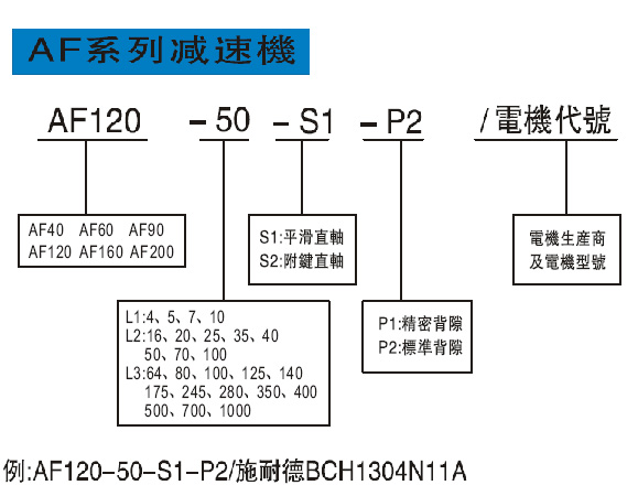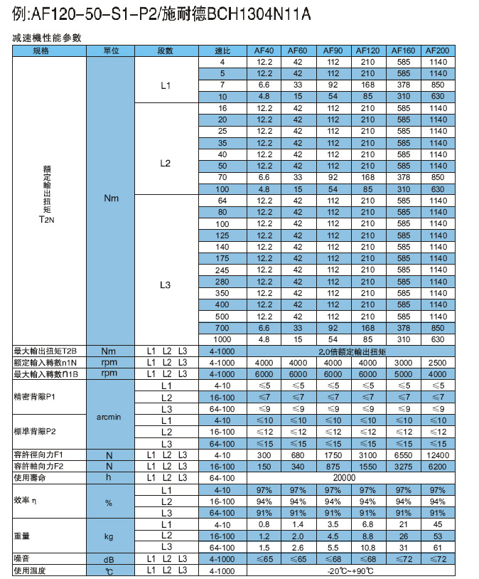 為方形法蘭設(shè)計(jì),安裝尺寸簡單方便。型號(hào)分:AF42、60、90、120、140、160、200機(jī)座型號(hào)。速比:1-1000有19種比速可選擇;分一、二、三級變減速傳動(dòng);精度:傳動(dòng)精度在6-8弧分,二級傳動(dòng)精度在8-10弧分,三級傳動(dòng)精度12-15弧分;等1000多種規(guī)格。